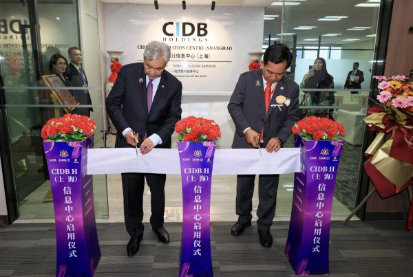 The launch was followed by a MoU exchange between CIDBH and its strategic partner and collaborators, MCC Overseas (M) Sdn.Bhd, CABR (China Academy of Building Research Jianshuo – Beijing C., Ltd), Guangzhou Intelligence Quality Assurance Co. (IQA) and PROVA Inspection & Testing Co., (H.K.) Ltd. The ceremony was witnessed by the Chief Executive of CIDB Malaysia, Datuk Ir. Ahmad ‘Asri Abdul Hamid and Consul General of Malaysia in Guangzhou, Madam Suraya Ahmad Pauzi.